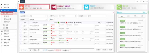 点击首页快捷菜单“资产登记”或左侧“资产入账→资产登记” 菜单,都可以进入登记界面。
