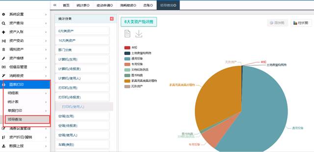 可供用户查询名下,以及管辖范围内的资产及分类情况。