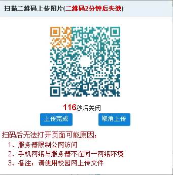 第一步:点击【手机上传】,调用手机中的【微信】中的【扫一扫】,扫描下图中的二维码,用手机现场拍照采集图片,并上传,然后再点击下图中的【上传完成】即可