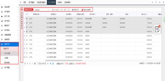 1)系统支持打印资产卡片、验收单和变动申请单。