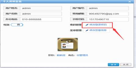 用户首次登陆后要求对密码进行修改,并建议每间隔3个月对密码进行更新替换,以保证账号安全。操作方法为点击登陆后页面右上角“账号信息”栏—“修改资料”按钮。