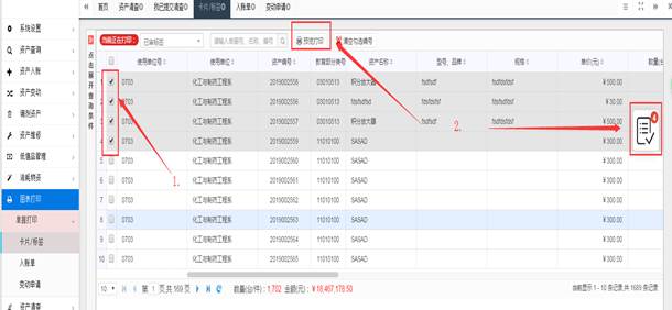 2)查询到需要打印的数据之后对需要打印的数据进行勾选,勾选之后点击“预览打印”或者直接点击页面右边的选中栏